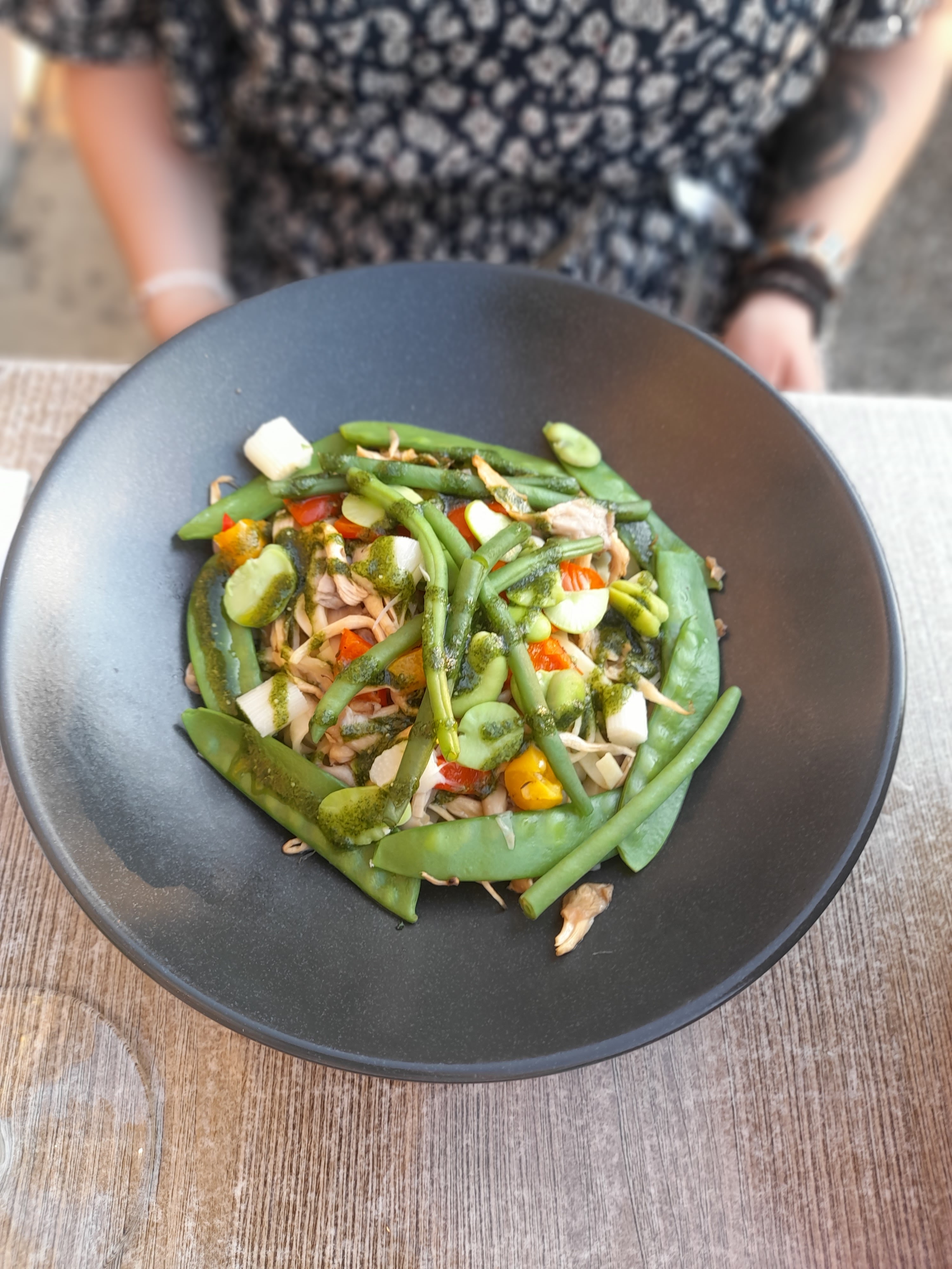 Cadre agréable et accueil sympathique mais rapport qualité prix à revoir. Nous avons trouvé que ce nous avons mangé ne valait pas le prix payé. Les produits sont frais mais les plats vraiment basiques , facilement réalisables soi même , et la quantité limite. Aucune orgiginalité. Service lent ( 30 min entre entrée et plat) Les masques transparents enduits de condensation que portent les serveurs sont peu ragoûtants.