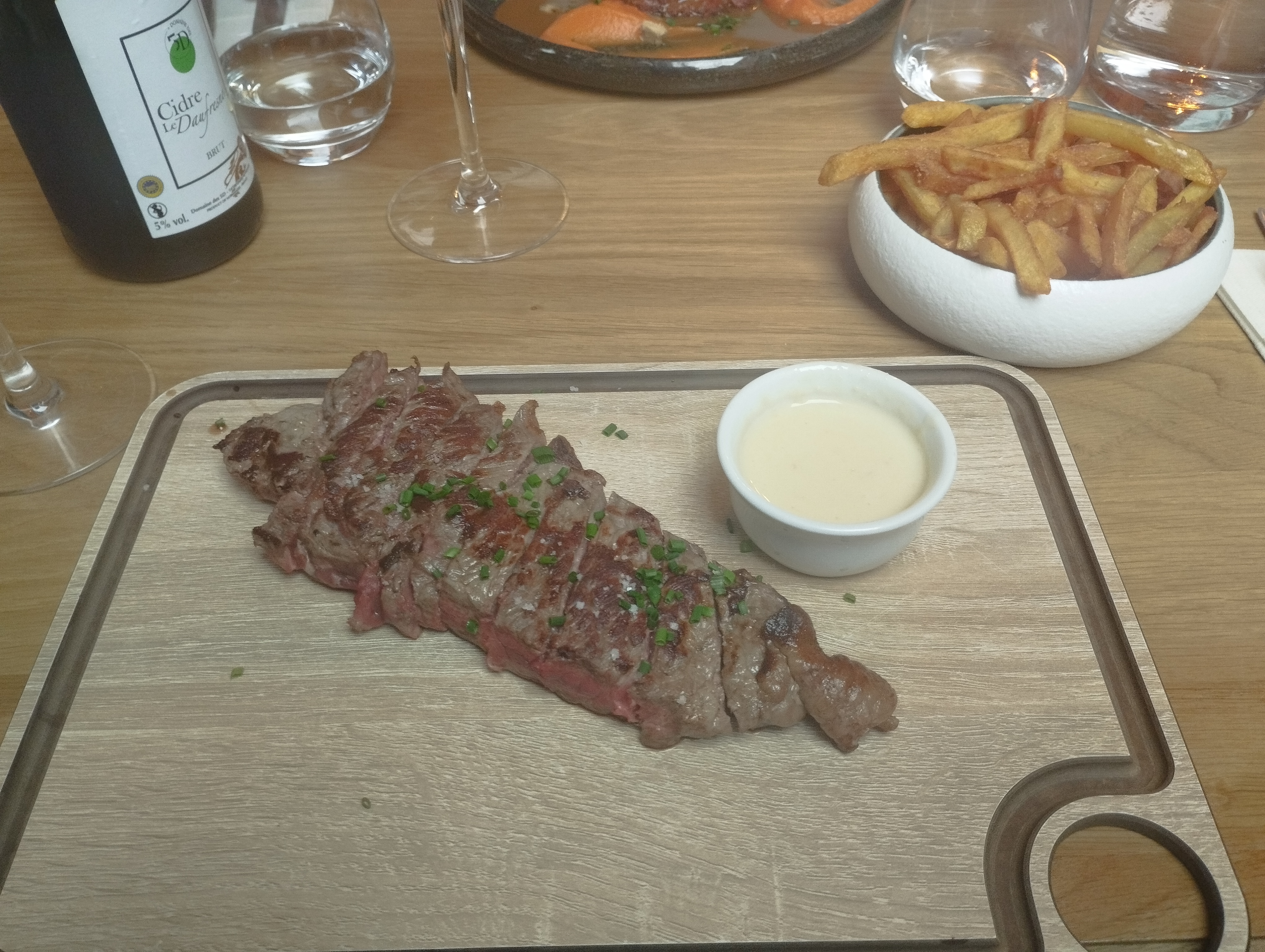 Excellente soirée : même si le restaurant est presque plein le service est rapide et discret, les plats très bons bien présentés (frites bien chaudes et bonnes). Très bons vins. La décoration est chaleureuse. Vous l’avez compris je recommande vivement