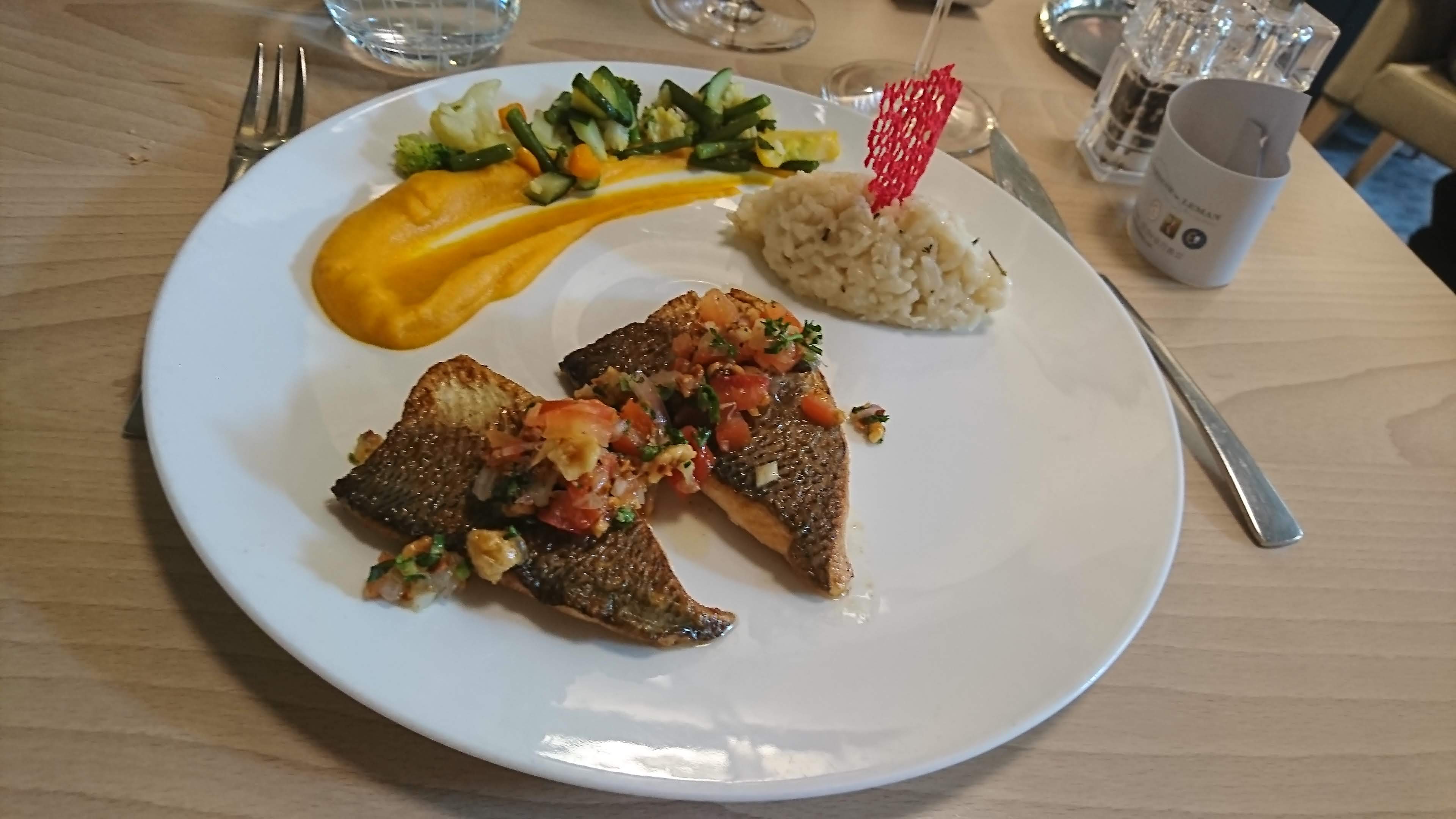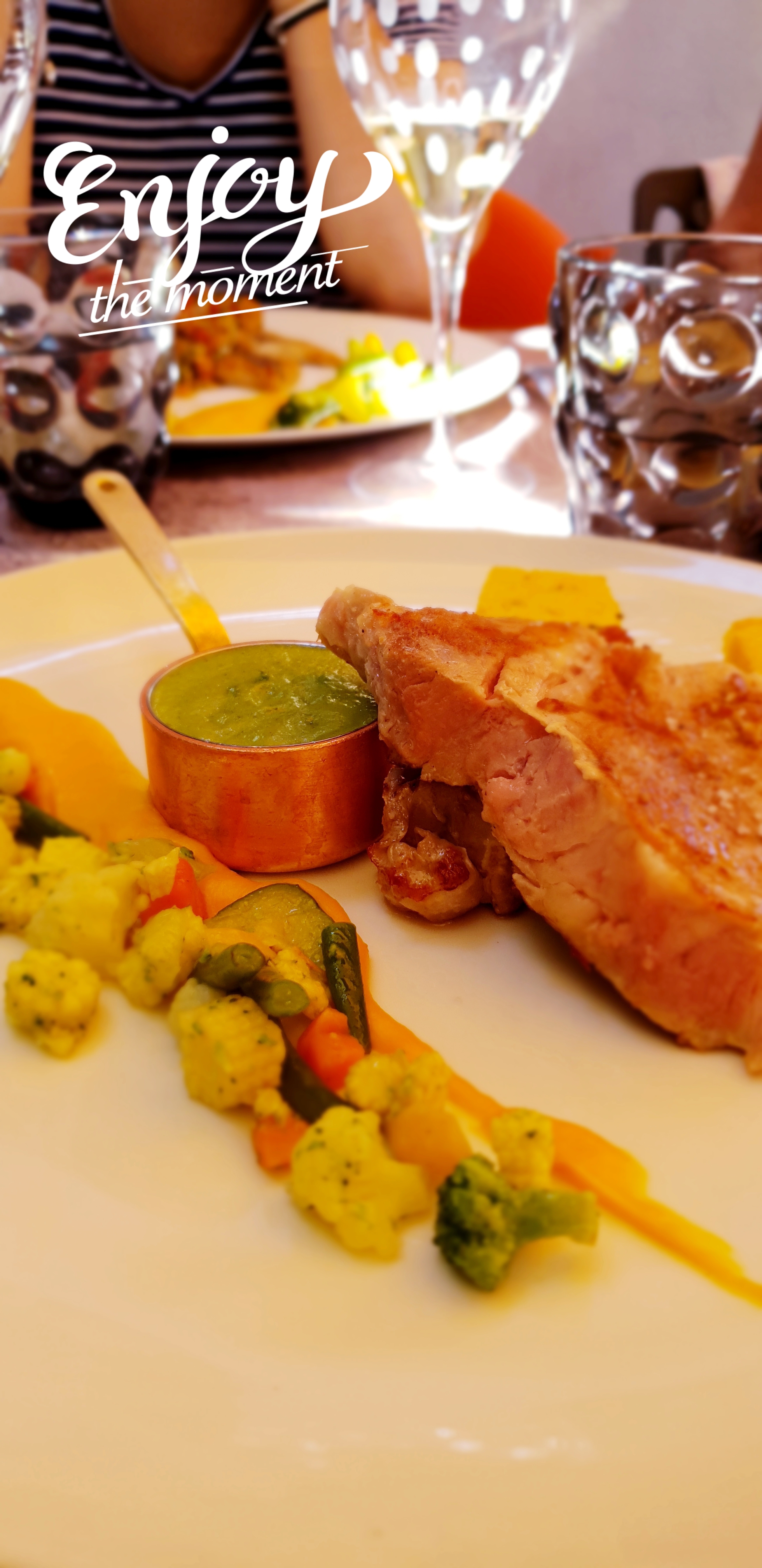 Repas dans la salle du bas au cadre très agréable dans une ambiance classique mais modernisé par ses tableaux contemporains. Nous avons mangé des filets de perche pour moi et carré de porc pour mon fiancé, les deux étaient délicieux! Parfait au niveau des quantités et la sauce au citron des filets de perche ohlalala exquise !! Service parfait, personnel très souriant et aimable, merci encore pour ce beau moment.