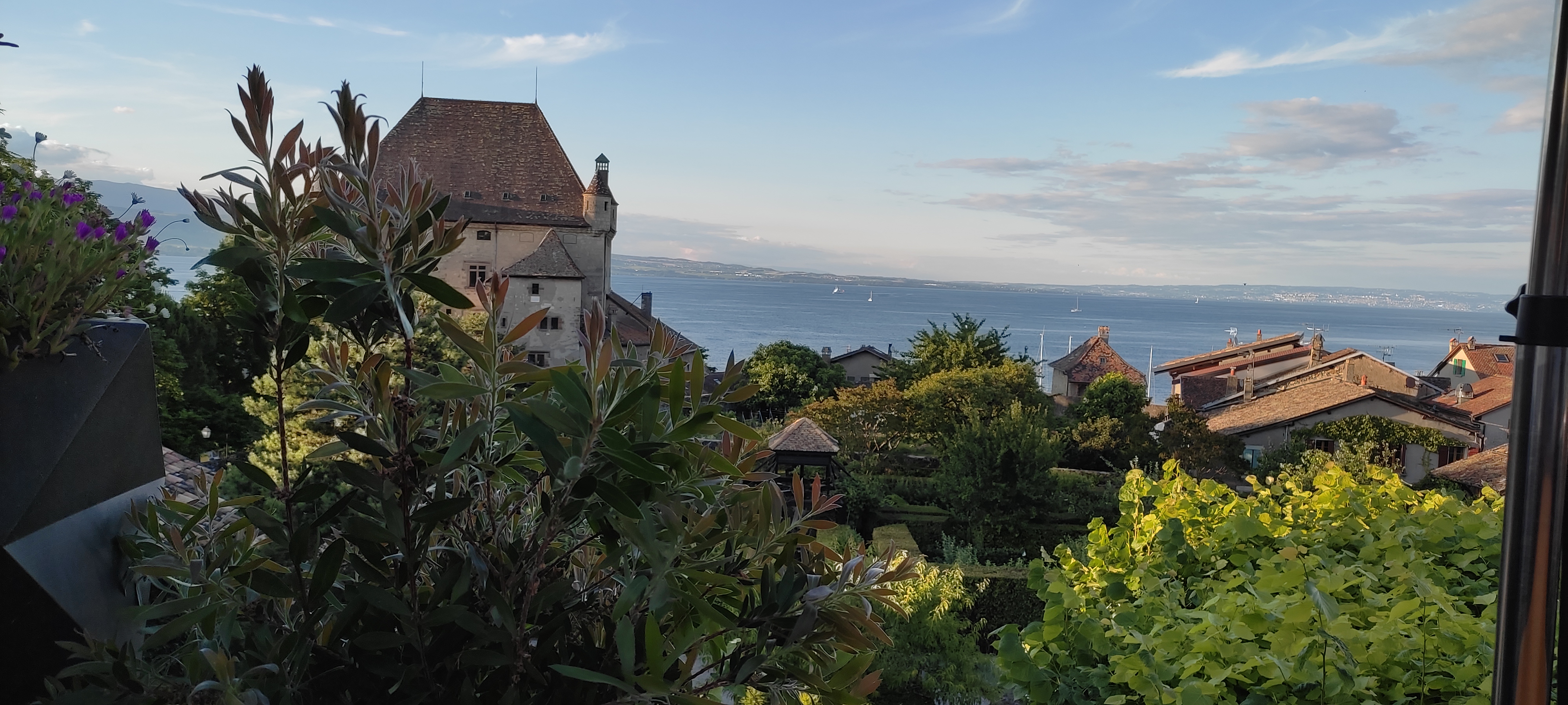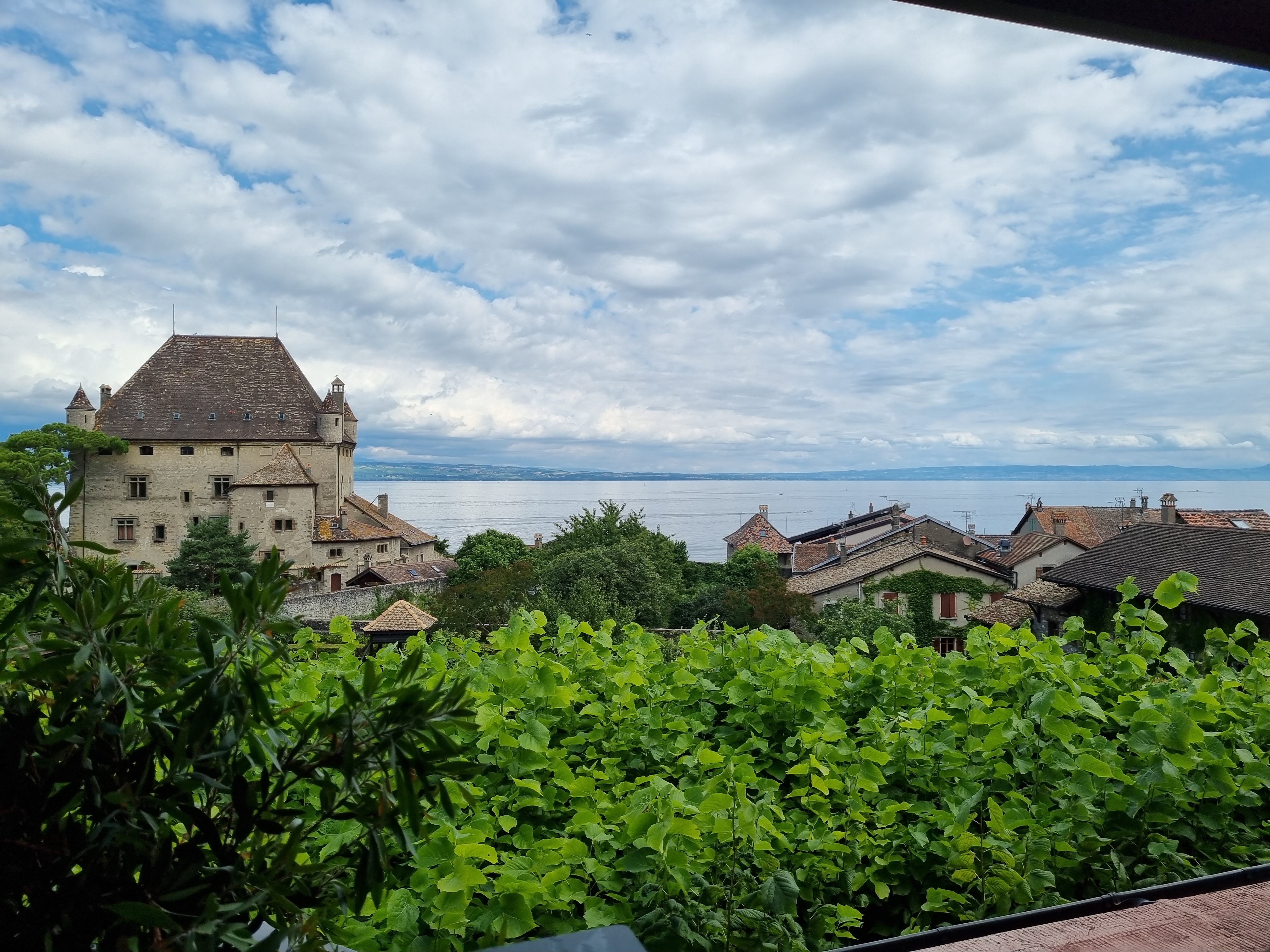 Le repas était divin ! Ambiance agréable et jolie vue sur un château et sur le Léman.