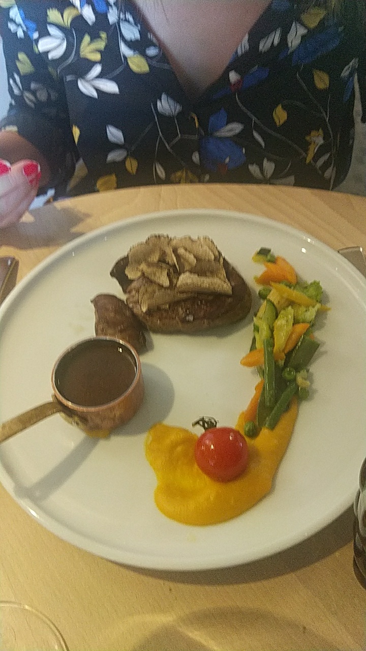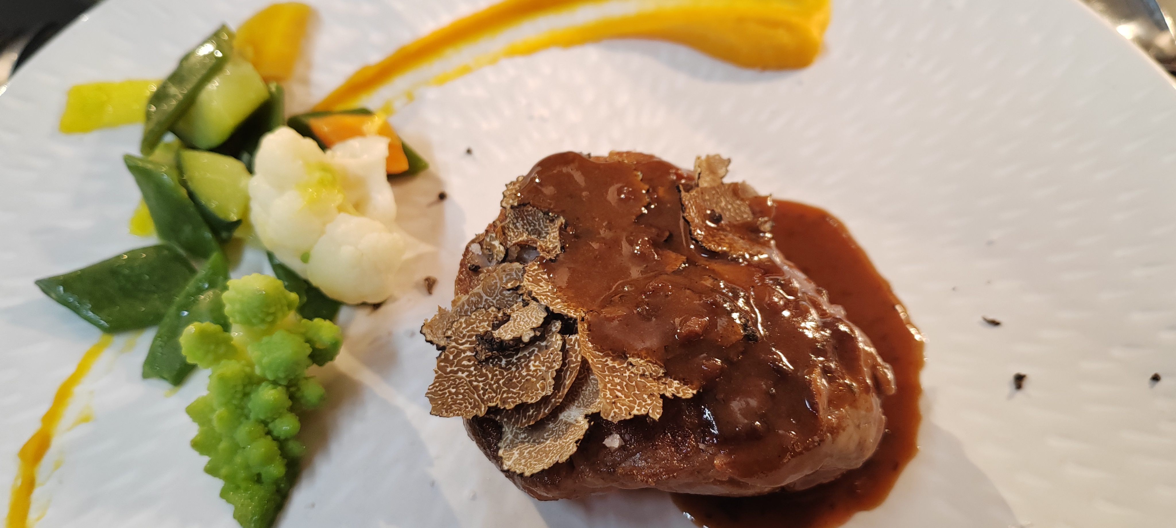 Fantastique Tout était très bon, de l'entrée au dessert. Le bœuf à la Truffe mamamiaaa Sinon, un personnel aux petits soins avec toujours le sourire. Merciii On reviendra pour manger en terrasse panoramique