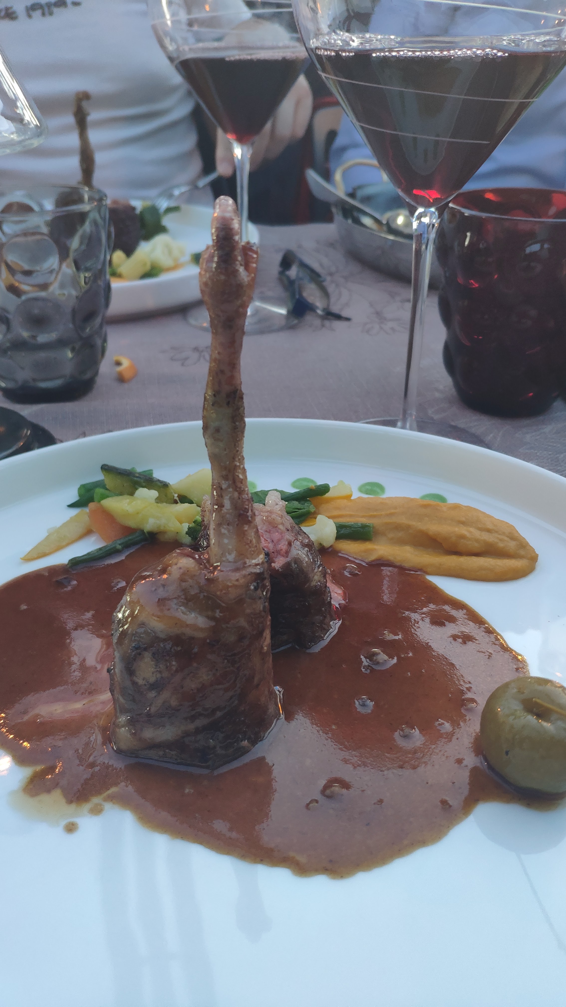 Nous avons bien mangé dans l'ensemble mais entrée (ballotine de lapin au foie gras) un peu décevante au niveau de l'assaisonnement et des goûts. Le plat (agneau en croûte d'herbe) était très bon, le dessert à la pêche, frais et aérien, parfait pour terminer le repas. La terrasse panoramique est très agréable.