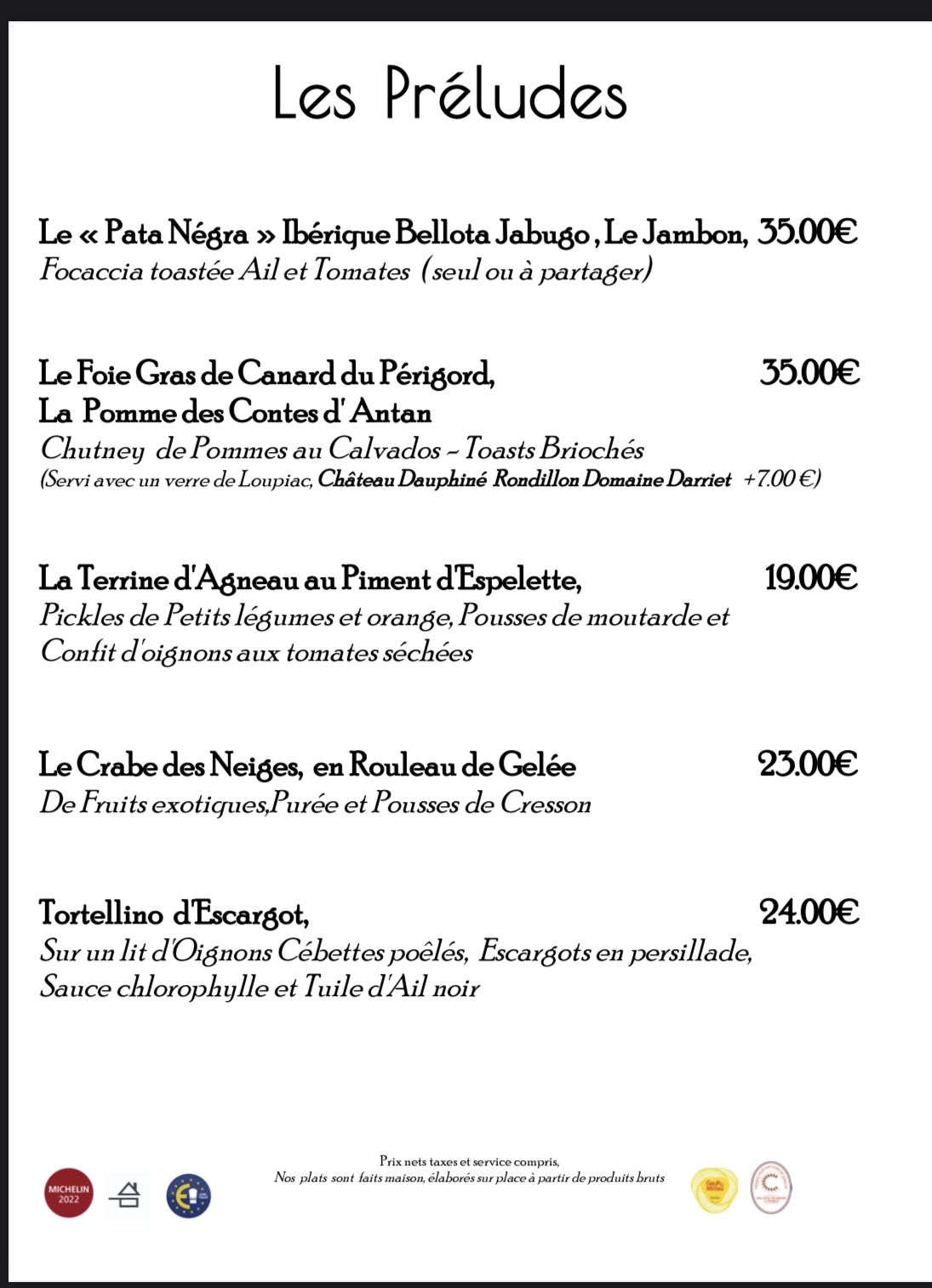 Bonjour à tous nous avions réservé pour 5 p et les réservations étaient en terrasse d après la réceptionniste ? 12* mauvais temps Les amuses bouches un peut léger pour un menu gourmand à 70€ Le suite du repas extra bravo !, nous avions pris deux bouteilles de vins don une à 65€ total facture 477€ la patronne a oublié la bouteille à 65€ ,honnêtement nous avons fait la remarque et après rectification, même pas un remerciement et même pas un geste commercial même pas enlevé les cafés ,notre étonnement mais après réflexion ce restaurant fonctionne trop bien !