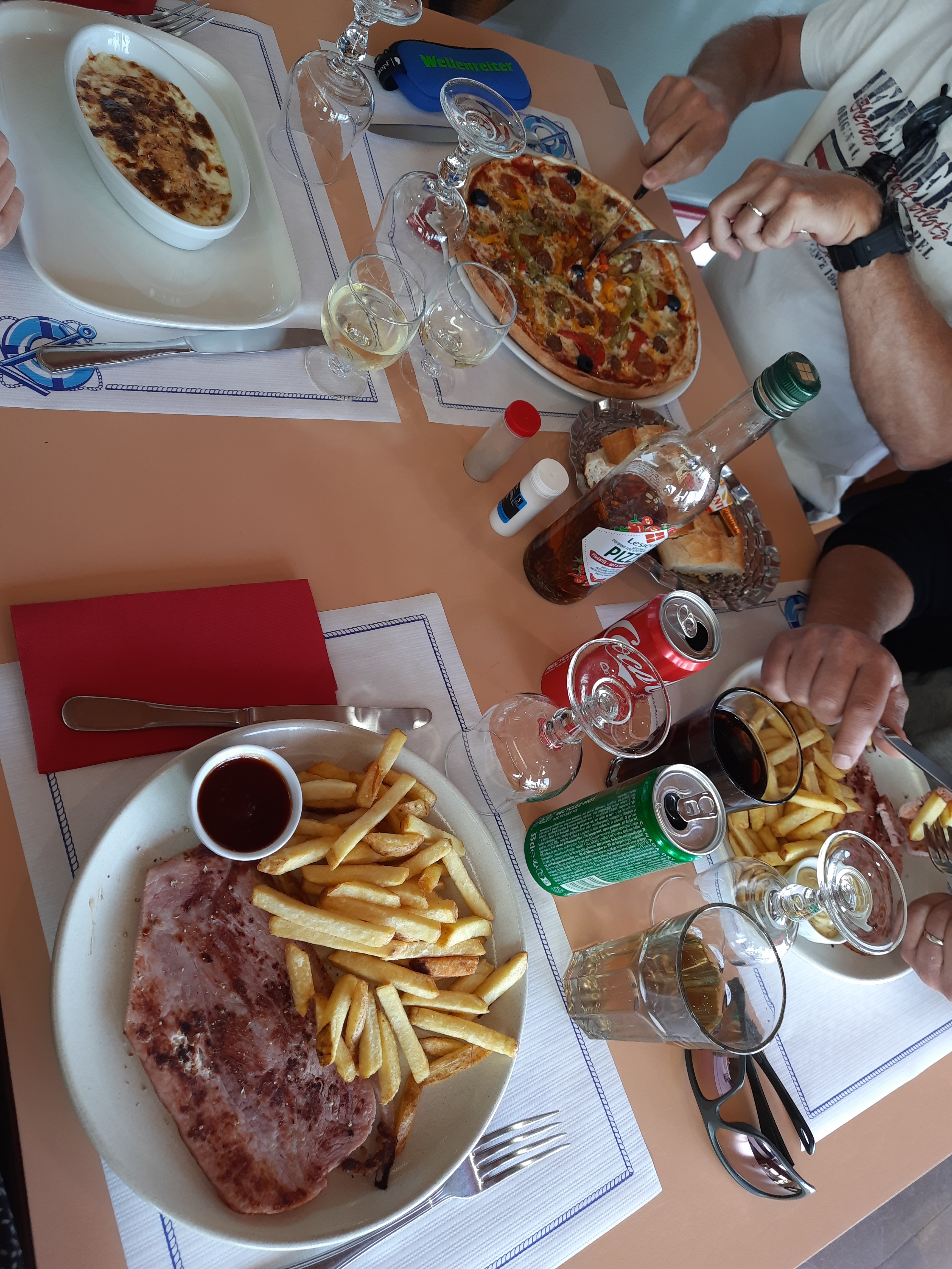 Posté le 23/08/2023 à 18:51"Arrivé au restaurant à 12:30. Une fois commander au bout de 10 mn: une pizza, une saucisse frite ,jambon grillé frite et un faux filet frite.Tout ça servit à 13:30. Une heure d attente et sans prendre d’apéro et en plus le resto n était pas blindé de monde . Et bien sûr pour une cuisine que l’on pourrait faire à la maison si la pizza était nickel mais sino rien d’exceptionnel et je ne parle pas de la table de derrière qui est arrivé avant nous et servi quasiment en même temps que nous."