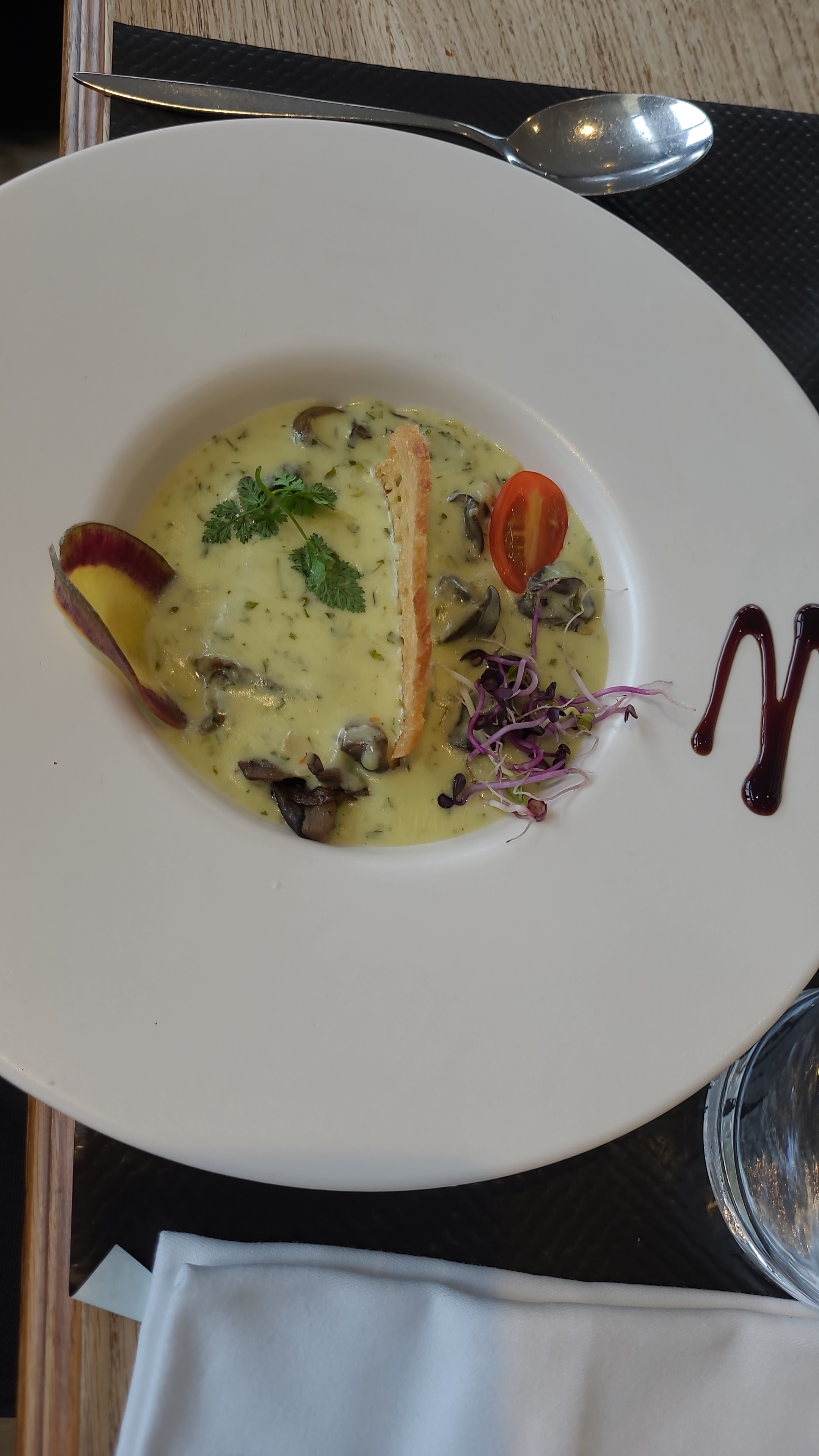 Nous sommes venus pour la première fois. Beau restaurant, bonne ambiance, bonne cuisine et un bon choix de plat ,mais dommage velouté de potimarron froid et viande de veau avec ça sauce aux morilles froid également, mon mari a pris un rumsteck il était froid également. La coupe de champagne blanc de blanc a 9€50 pas terribles et pas beaucoup de bulles... Je soupçonne une bouteille de champagne qui a était ouverte il y a bien longtemps.... Améliorez tout cela et je pense que nous reviendrons car en soit tout était bon .