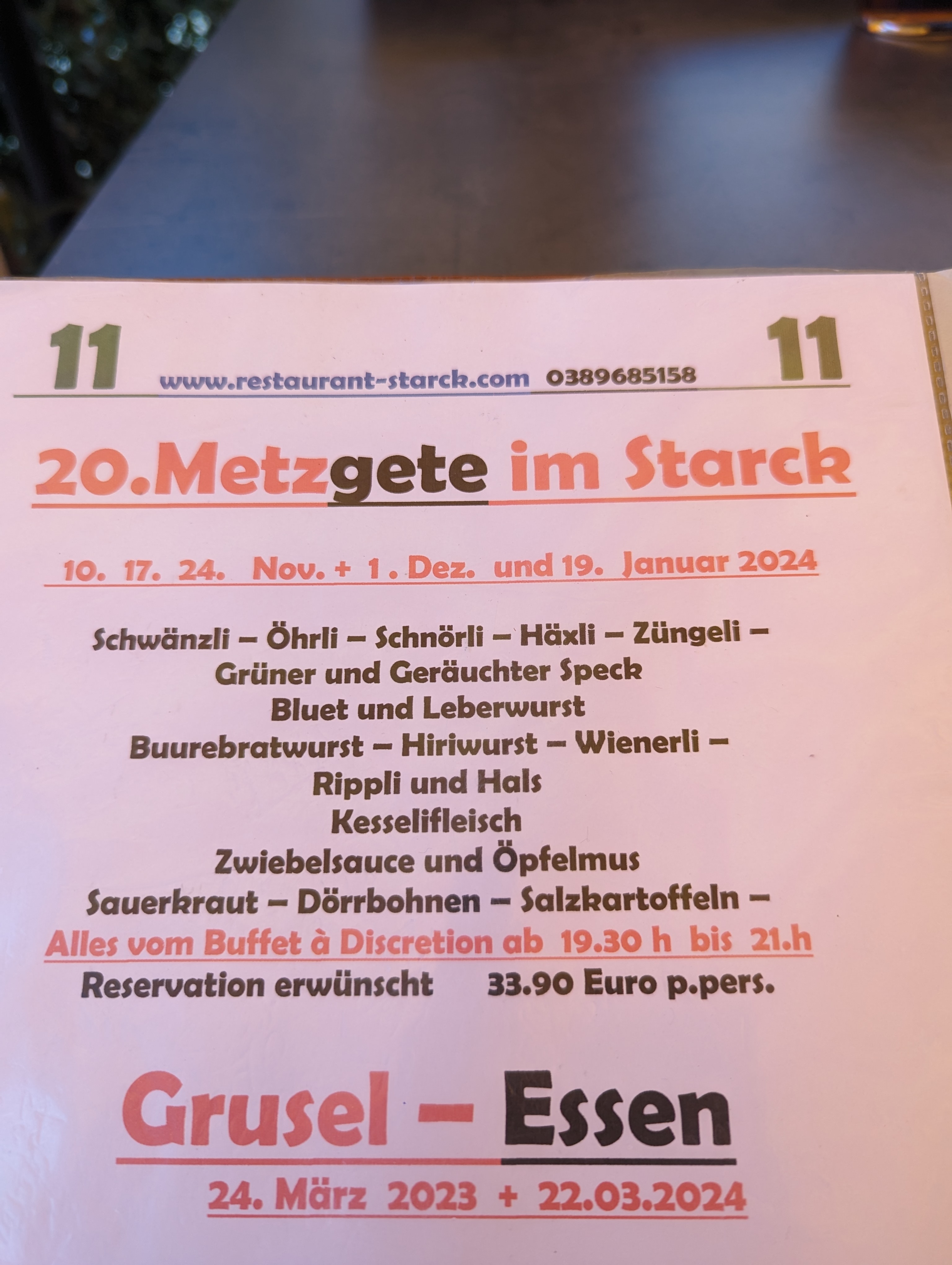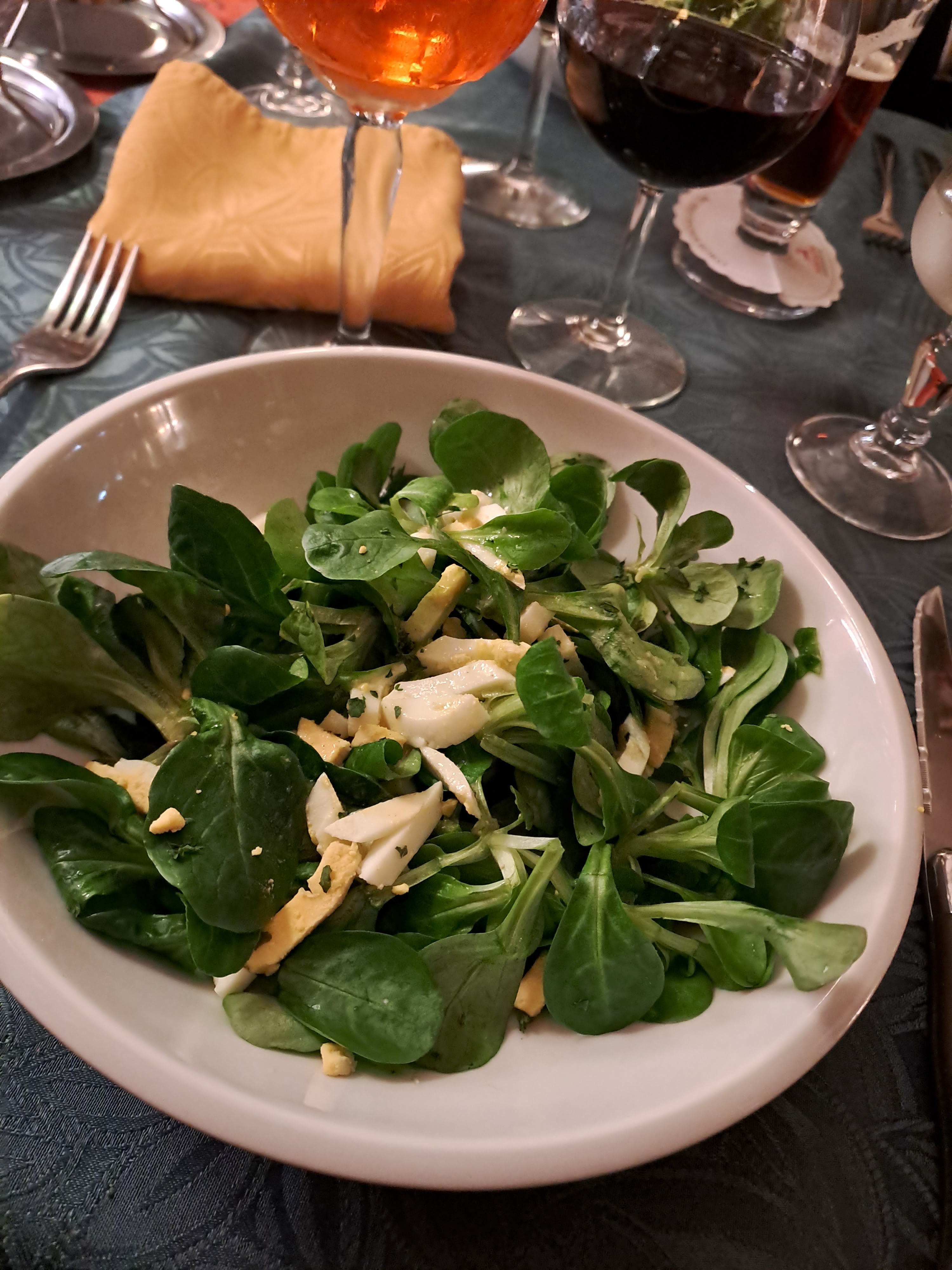 Nous avons encore eu un bon repas en Alsace. Comme toujours, la nourriture était excellente et le crémant était savoureux. Toujours heureux de venir ici.