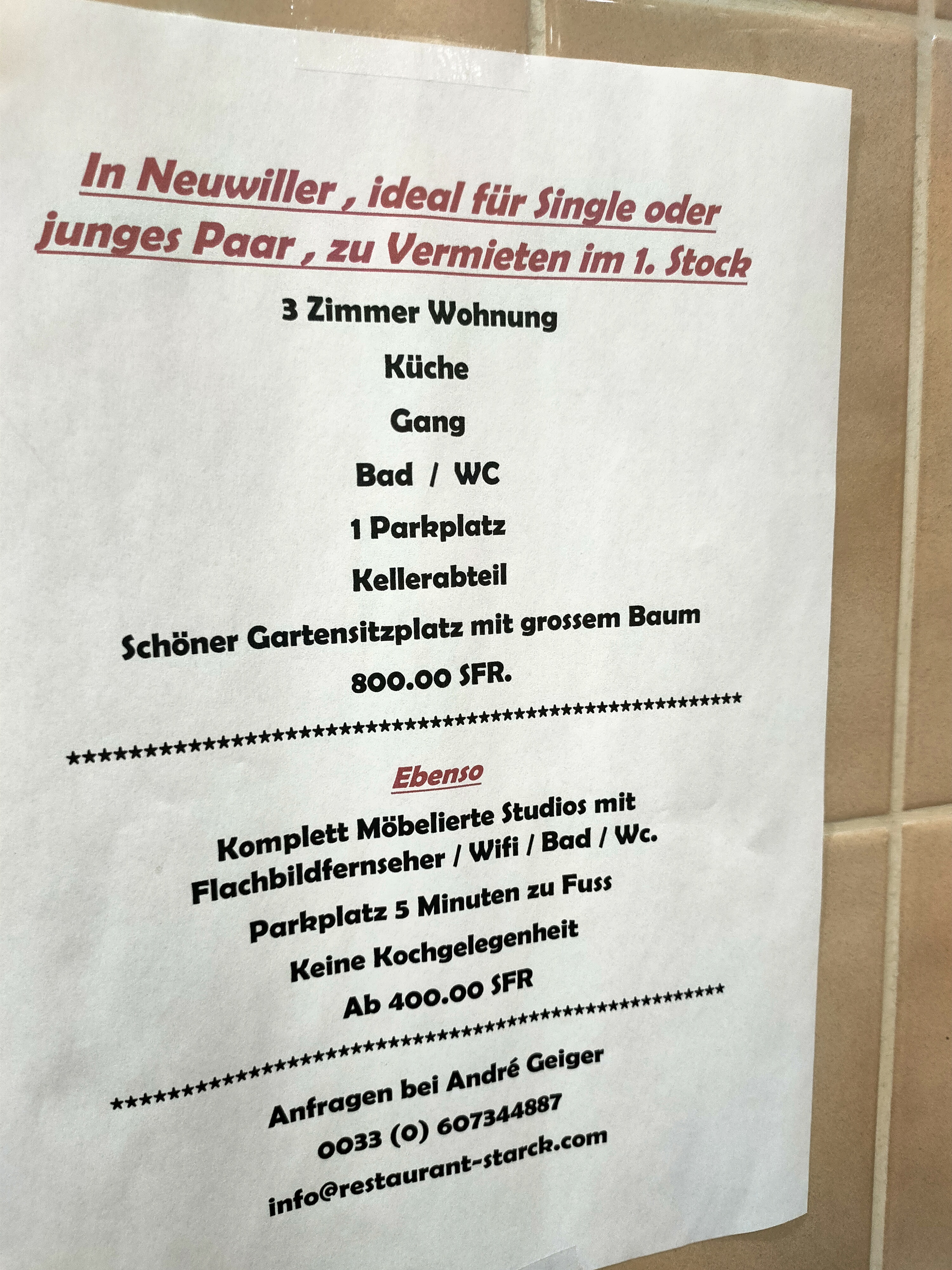 Pub alsacien chaleureux et authentique près de Schönenbuch/BL, souvent visité par les Suisses