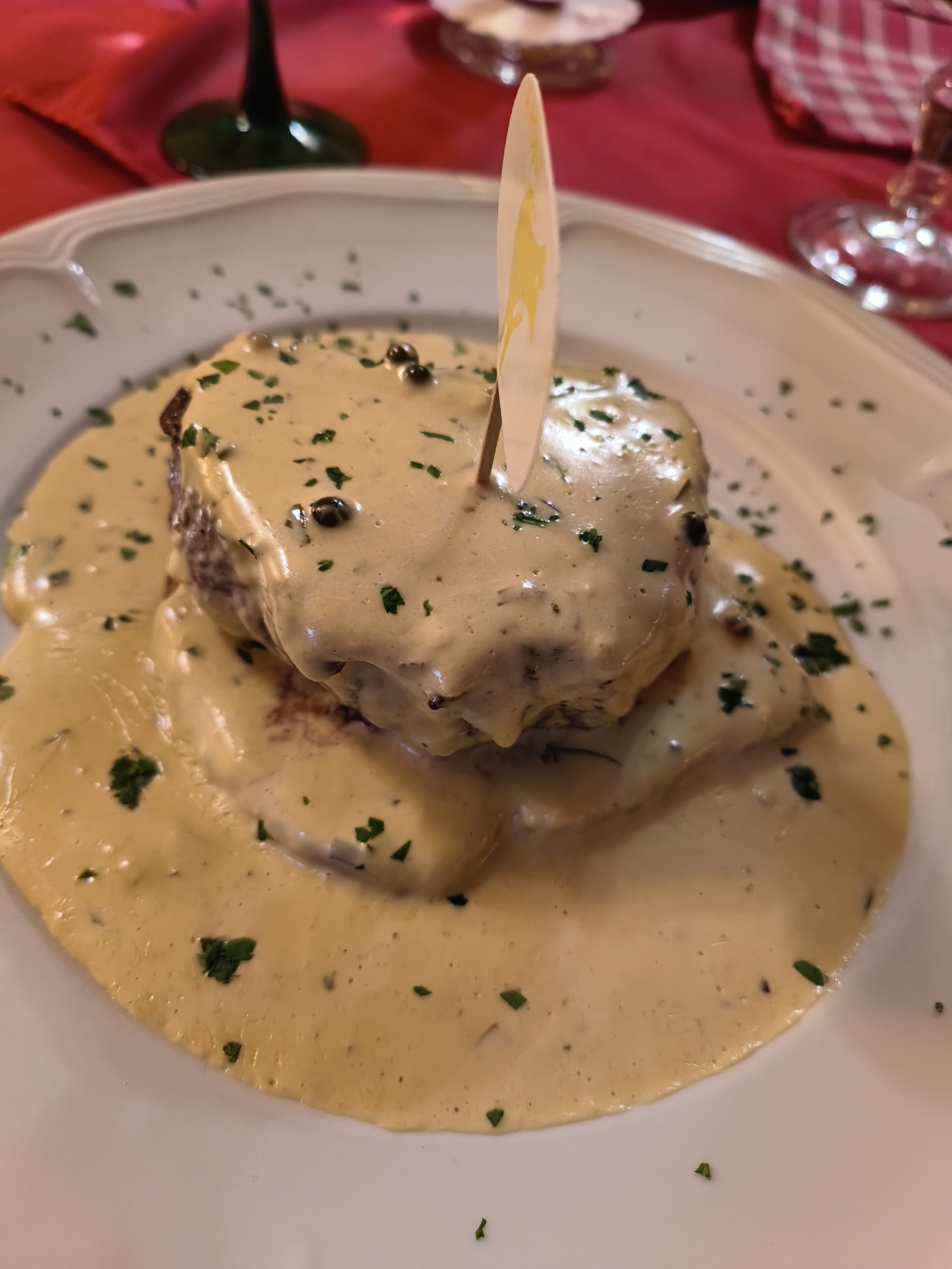 Je n'ai JAMAIS été aussi étonné par la nourriture dans un restaurant. La viande avec la sauce crémeuse aux champignons n'était qu'un rêve, je devais me ressaisir pour ne pas gémir en mangeant. J'ai commandé les Pointes de Filet de Boeuf - je n'ai pas eu besoin de l'assaisonner, c'était PARFAIT tout comme la salade. Service très sympathique - le chef doit être un talent naturel, très sympathique et jeune, ce qui m'a beaucoup surpris par la qualité exquise. Juste wow!!!!