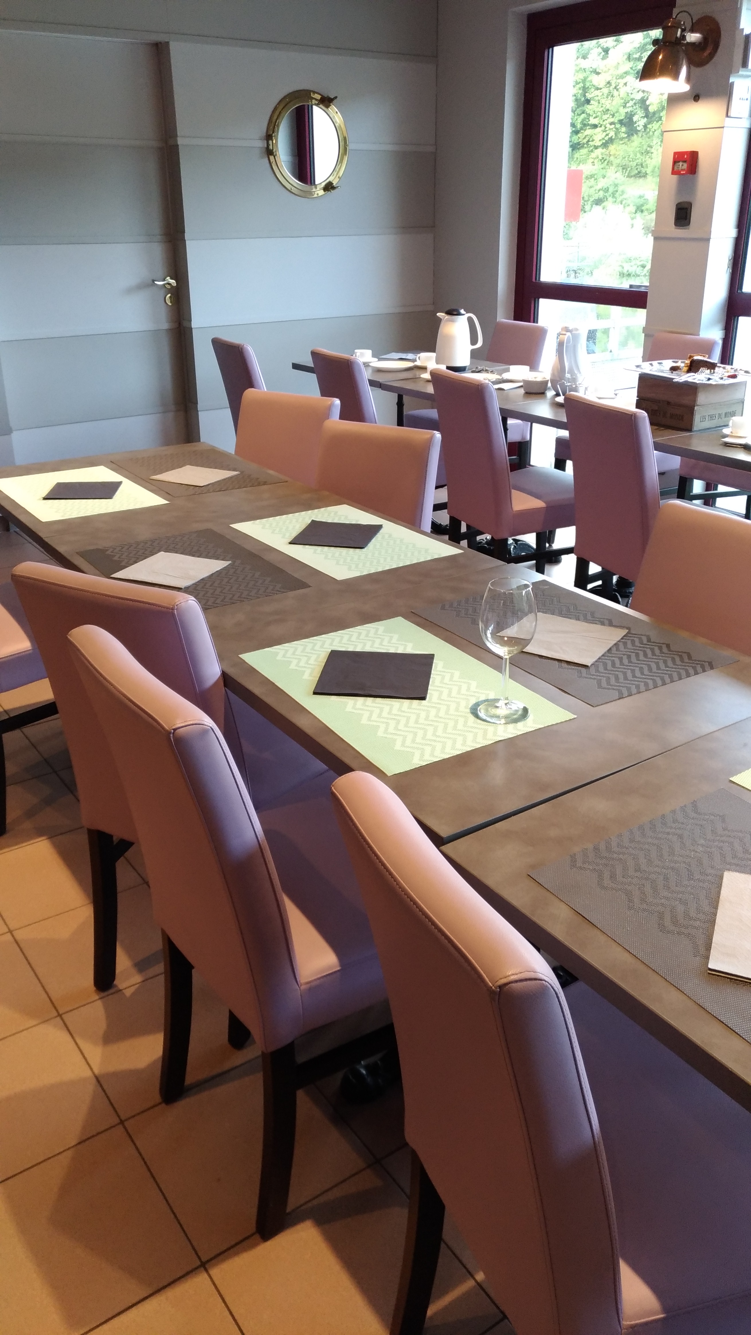 Cadre agréable, salle adaptée aux groupes. Serveuse souriante. Accès facile et adaptée aux personnes à mobilité réduite. Sympathique terrasse couverte avec en prime une vue sur les berges de la Sarre. Grand parking.