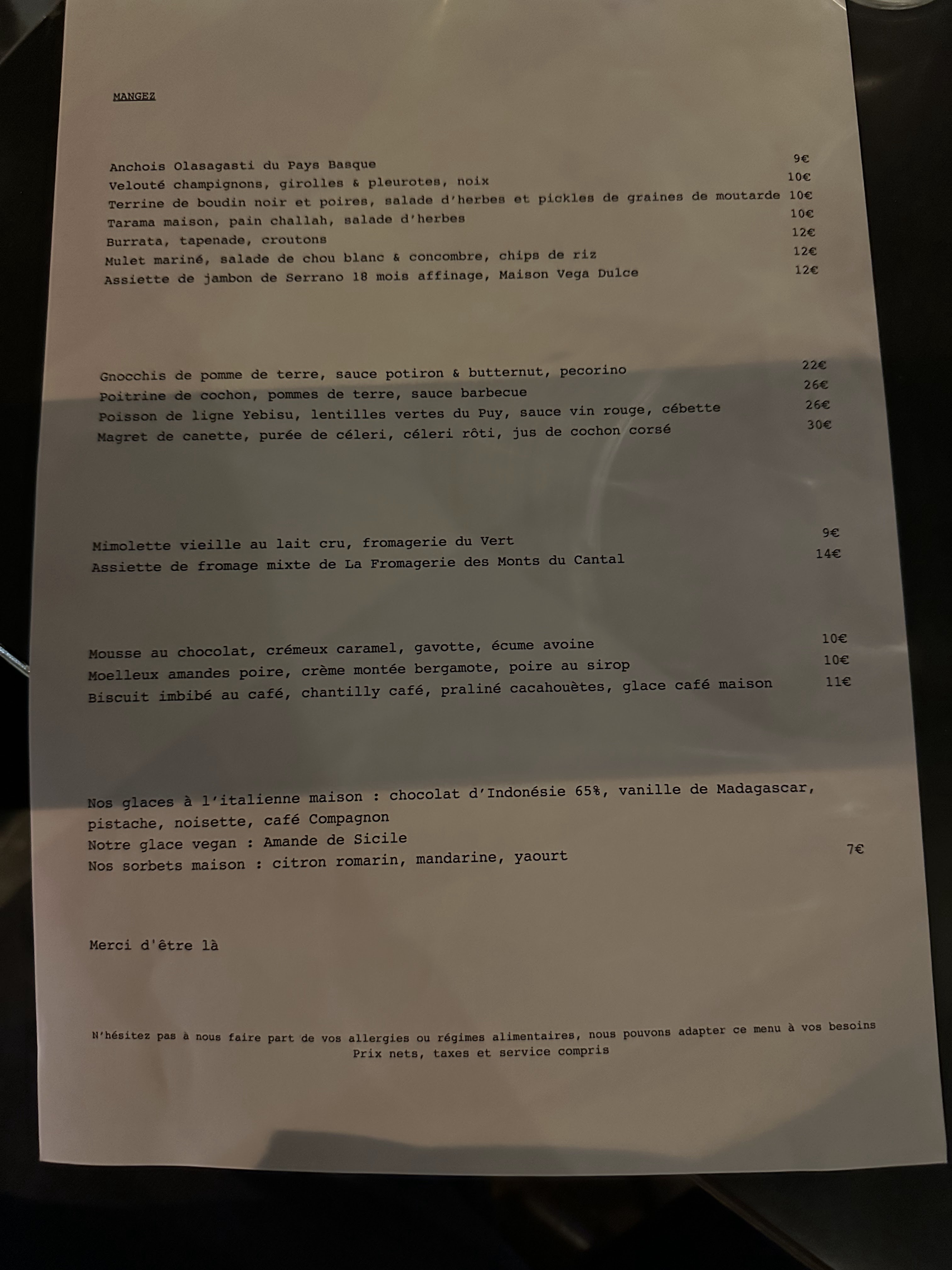 De passage à Paris nous avons adoré cet endroit tant par l'accueil que par la qualité des plats et vins.