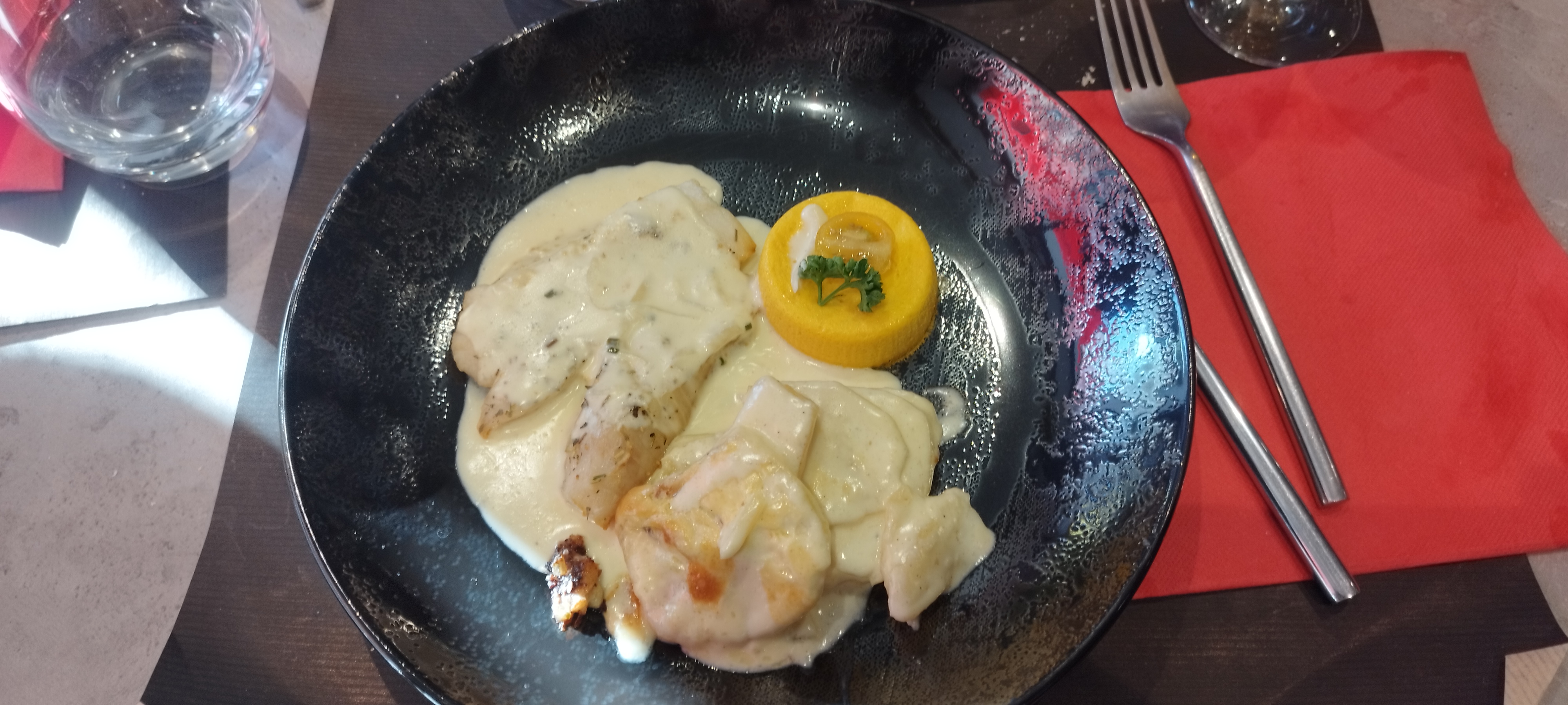 Très bon plat fin et délicat Et prix très correct Acceuil sympathique et service rapide Tout était parfait